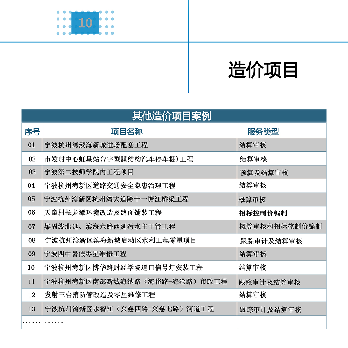 經(jīng)過十多年的發(fā)展,公司基本形成了貫穿投資項(xiàng)目建設(shè)全過程業(yè)務(wù)鏈條,縱向一體化綜合服務(wù)優(yōu)勢明顯;服務(wù)范圍基本涵蓋了國民經(jīng)濟(jì)和社會發(fā)展的方方面面,在涉及民生及城市發(fā)展的許多重要領(lǐng)域構(gòu)建了獨(dú)具特色的咨詢評估理論方法及服務(wù)體系,積累了一批經(jīng)驗(yàn)豐富的專家團(tuán)隊(duì),為政府和社會在工程建設(shè)項(xiàng)目的投資決策、投資控制和建設(shè)管理方面提供了強(qiáng)有力的智力支持和服務(wù)保障。