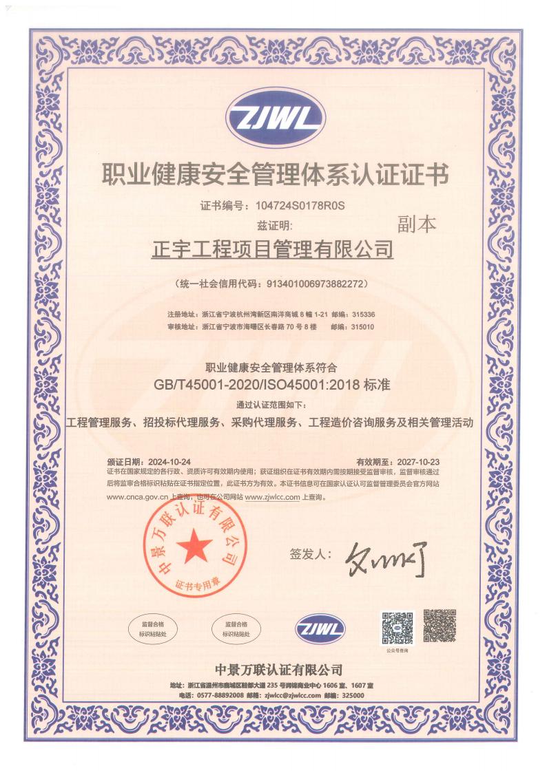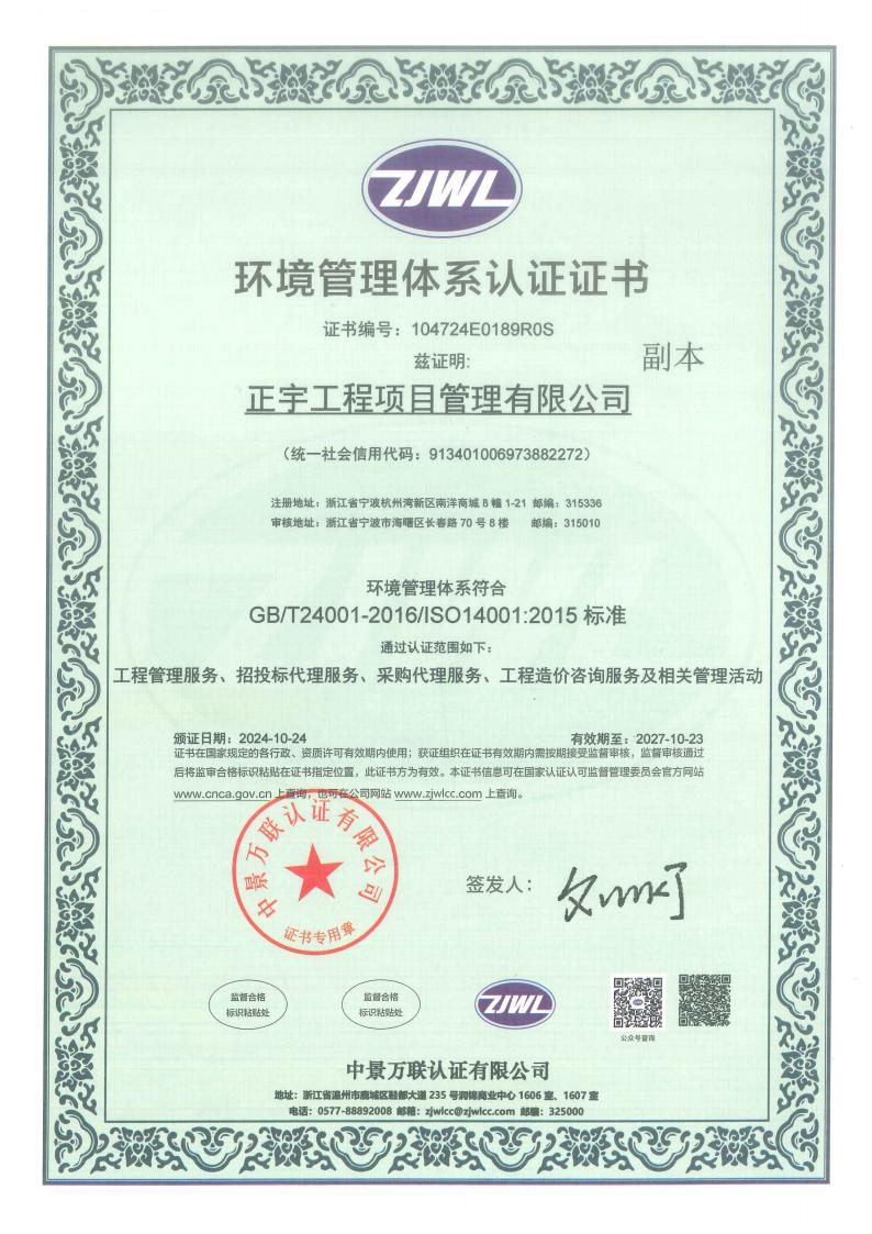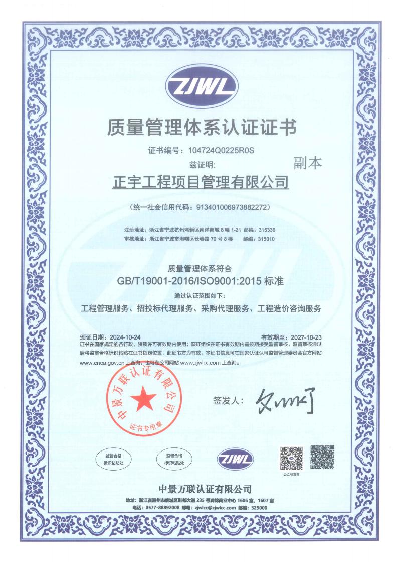 正宇工程項(xiàng)目管理有限公司成立于2009年,注冊資金6080萬,注冊地為浙江省寧波市杭州灣新區(qū)。公司擁有國家住建部頒發(fā)的工程造價企業(yè)甲級資質(zhì)、招標(biāo)代理資質(zhì)等等;是一家專業(yè)從事工程項(xiàng)目管理、企業(yè)管理、政府采購代理服務(wù)、招投標(biāo)代理服務(wù)、信息技術(shù)咨詢服務(wù)及其他技術(shù)服務(wù)的綜合型工程咨詢公司。
